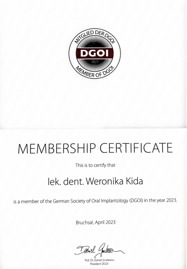 i implantologicznych. Aktywnie pomaga rówenież podczas zabiegów z zakresu stomatologii zachowawczej, endodoncji pod mikroskopem oraz protetyki.